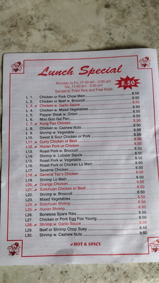 The menu at Hunan Chinese Restaurant offers a straightforward and comforting selection of classic Chinese dishes that suit casual dining and quick meals alike. It’s the kind of place where you can enjoy familiar, satisfying flavors whether you’re stopping in for a relaxed lunch or a convenient dinner takeout.